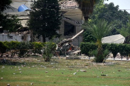 這是5月7日在巴控克什米爾地區(qū)首府穆扎法拉巴德拍攝的遭印度空襲的建筑。新華社發(fā)(穆罕默德·丁·穆加爾攝)