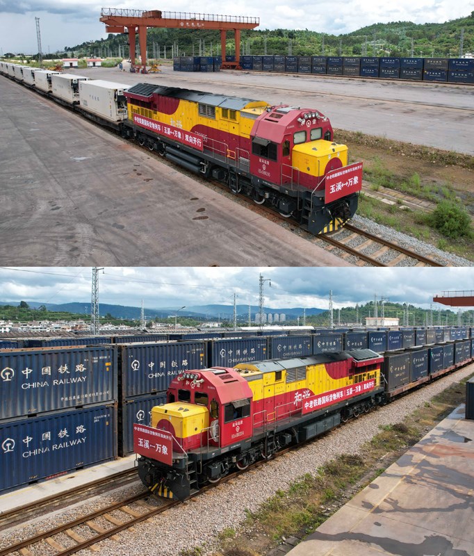 當(dāng)日,中老鐵路國(guó)際貨物列車(chē)(玉溪—萬(wàn)象)實(shí)現(xiàn)雙向開(kāi)行。中老鐵路自2021年12月開(kāi)通以來(lái),截至今年7月底,運(yùn)輸貨物超6450萬(wàn)噸,其中跨境貨物突破1490萬(wàn)噸。