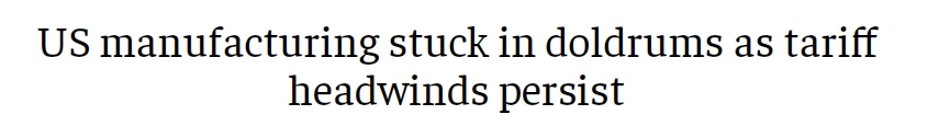 文章還表示,關稅帶來的不確定性“陰云”不太可能很快消散。美國最高法院大法官上個月對政府關稅的合法性提出質疑,引發(fā)了人們對這些關稅將被推翻并造成更大混亂的猜測。文章援引桑坦德資本美國資本市場首席經(jīng)濟學家斯蒂芬·斯坦利(Stephen Stanley)的觀點表示:“(美國)制造業(yè)將繼續(xù)受到難以預測的關稅政策的拖累。”