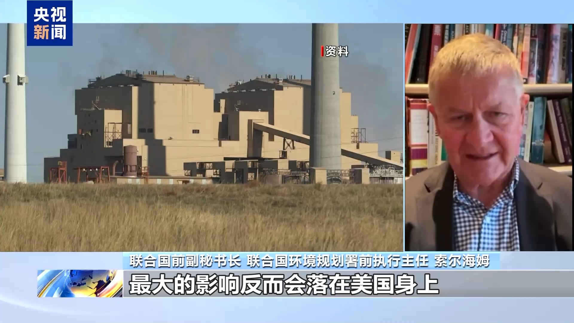 聯(lián)合國(guó)前副秘書(shū)長(zhǎng) 聯(lián)合國(guó)環(huán)境規(guī)劃署前執(zhí)行主任 索爾海姆:我認(rèn)為,諷刺的是最大的影響反而會(huì)落在美國(guó)身上,因?yàn)槊绹?guó)現(xiàn)在正在削減在太陽(yáng)能、風(fēng)能和電動(dòng)汽車方面的投入。