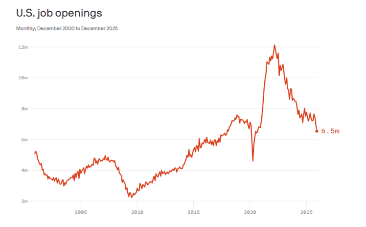 美國(guó)勞工統(tǒng)計(jì)局當(dāng)?shù)貢r(shí)間5日公布的數(shù)據(jù)顯示,美國(guó)當(dāng)前市場(chǎng)上的職位空缺數(shù)量降至2020年以來(lái)的最低水平。同時(shí)有報(bào)告顯示,美國(guó)企業(yè)1月裁員數(shù)量創(chuàng)下2009年以來(lái)的最高紀(jì)錄,引發(fā)多家媒體熱議。