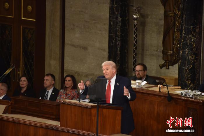 當?shù)貢r間2月24日晚,美國總統(tǒng)特朗普在國會參眾兩院聯(lián)席會議上發(fā)表國情咨文講話,聚焦經(jīng)濟、移民等議題。這是特朗普在本總統(tǒng)任期內(nèi)首次發(fā)表國情咨文。 記者 沙晗汀 攝