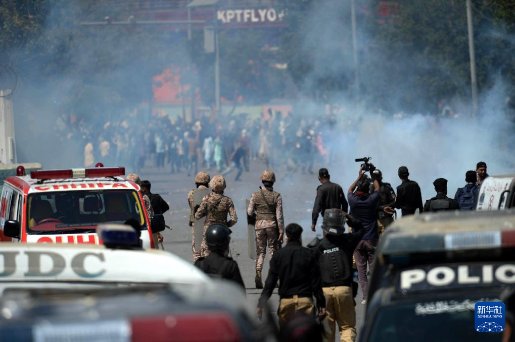 3月1日,在巴基斯坦南部城市卡拉奇的美國駐卡拉奇領(lǐng)事館附近,警察向抗議人群發(fā)射催淚瓦斯。