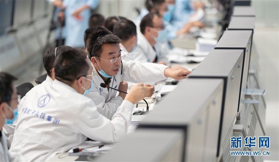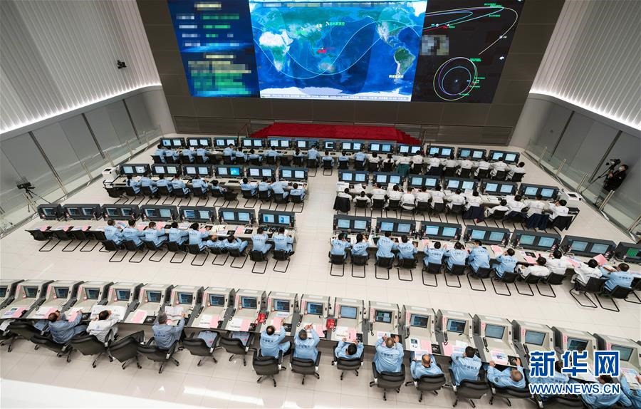 10月9日,在北京航天飛行控制中心,航天科技人員在現(xiàn)場工作。新華社記者才揚(yáng)攝