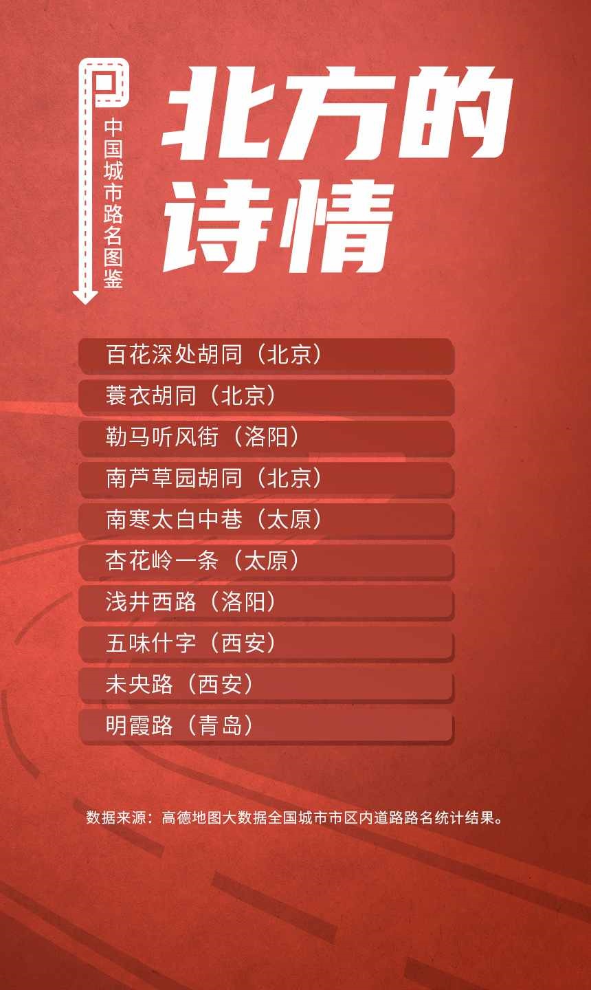 榜單顯示,人民路和建設(shè)路是全國(guó)重名率最高的道路,均有129個(gè)城市采用。此外,全國(guó)胡同最多的城市是北京;弄堂最多的城市是寧波;“小巷”最多的城市都在廣東省,深圳、東莞、中山、佛山和廣州包攬前五;“大道”最多的城市是佛山。