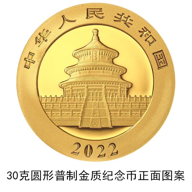 (一)30克圓形金質紀念幣為普制幣,含純金30克,直徑32毫米,面額500元,成色99.9%,最大發(fā)行量1000000枚。