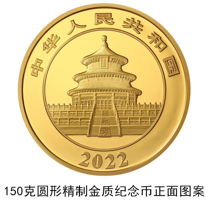 (十)150克圓形金質紀念幣為精制幣,含純金150克,直徑60毫米,面額2000元,成色99.9%,最大發(fā)行量10000枚。