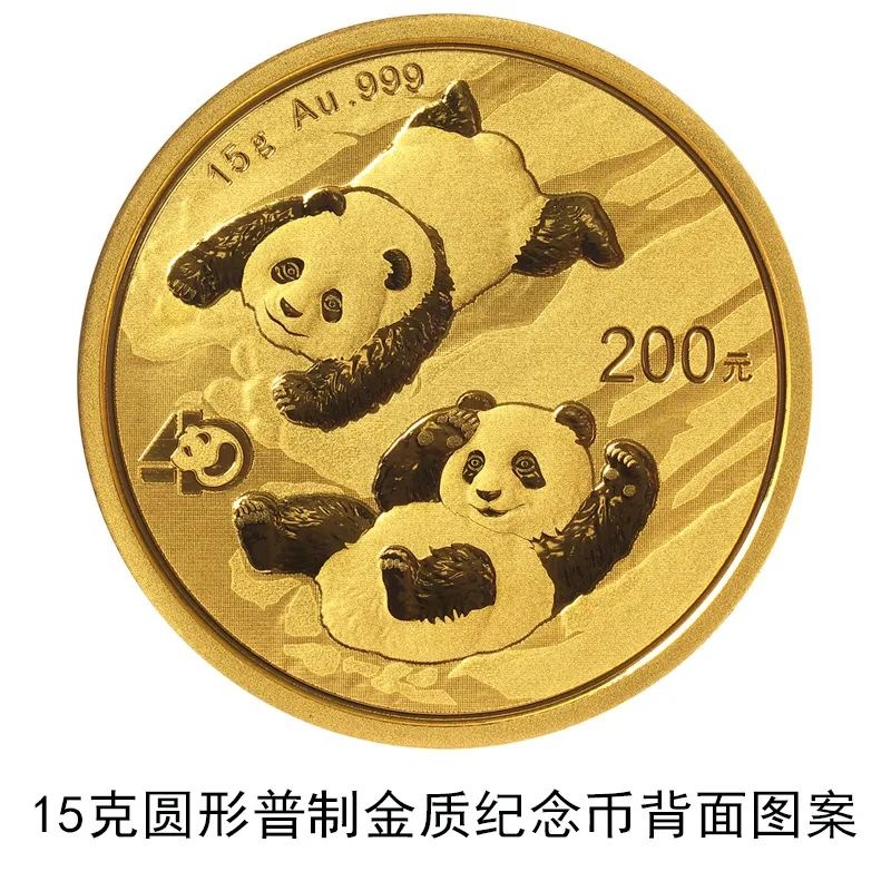 該套貴金屬紀念幣正面圖案均為北京天壇祈年殿,并刊國名、年號;背面圖案均為大熊貓滑雪嬉戲場景,輔以“熊貓金幣發(fā)行40周年標識”元素,并刊面額、重量及成色。