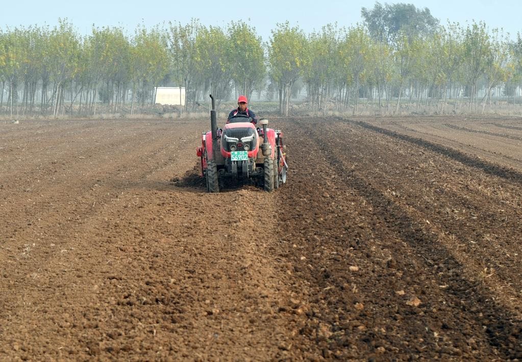 11月3日晚上,河南??h衛(wèi)溪街道西長村的田地里,農(nóng)民在耕地。(新華社記者李嘉南 攝)