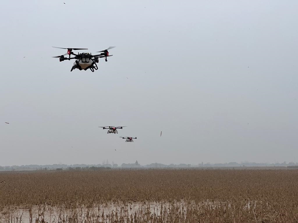 “地不凍,只管種?!笔罘逭f,無人機(jī)的快速撒播可以讓種子在土地上凍前及時入土,而且播撒均勻,省時省力,一架無人機(jī)一天可以飛播300畝以上,確保小麥及時足額足面積播種。