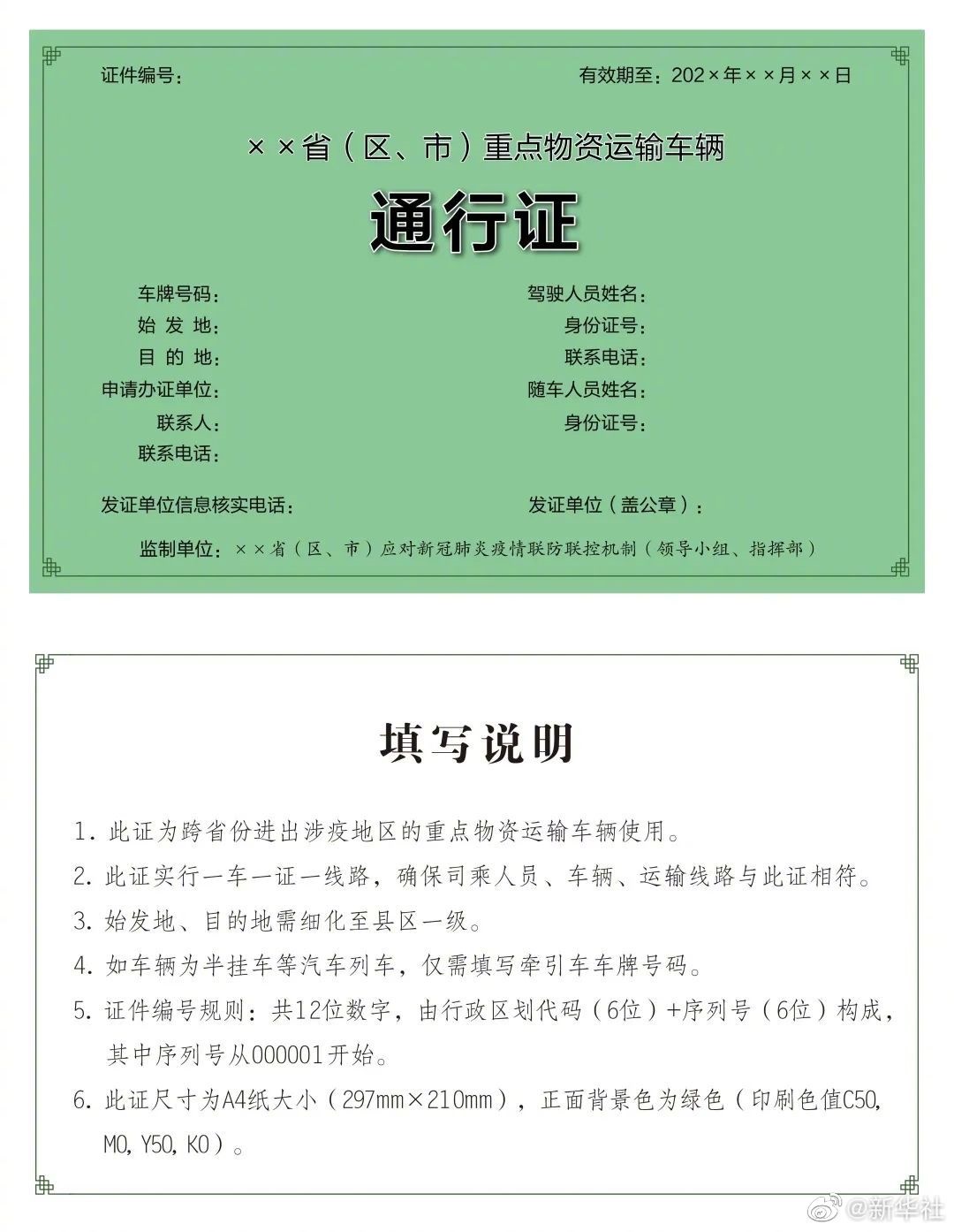 據(jù)國(guó)務(wù)院聯(lián)防聯(lián)控機(jī)制綜合組交通管控與運(yùn)輸保障專班有關(guān)負(fù)責(zé)人介紹,通行證實(shí)行“一車一證一線路”,有效期由各省級(jí)聯(lián)防聯(lián)控機(jī)制確定,紙質(zhì)和電子通行證具有同等效力。對(duì)于通信行程卡帶*號(hào)的貨車司機(jī),司乘人員體溫檢測(cè)正常且48小時(shí)內(nèi)核酸檢測(cè)陰性證明、健康碼、通信行程卡(“兩碼一證”)符合要求的要保障通行。同時(shí)要嚴(yán)格落實(shí)車輛到達(dá)前相關(guān)信息報(bào)備、目的地閉環(huán)管理等要求。