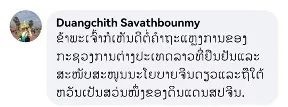 老撾黨中央機關(guān)報前總編輯、社長端吉·薩瓦本彌(Duangchith Savathbounmy)留言:“認(rèn)同我的祖國對臺灣問題的表態(tài),支持一個中國原則,臺灣是中國不可分割的一部分?!?/p>