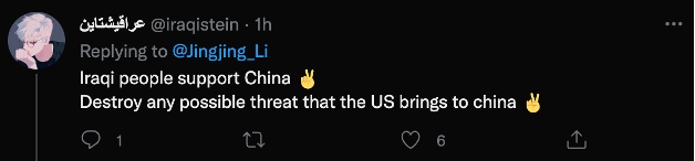 伊拉克網(wǎng)友@iraqistein:“伊拉克人民支持中國,粉碎一切美國可能給中國帶來的威脅吧。”