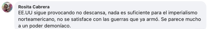 烏拉圭網(wǎng)友Rosita Cabrera:“美國一直在挑釁,不眠不休,對美帝國主義來說什么都不夠,它不滿足于已經(jīng)發(fā)動的那些戰(zhàn)爭,它就是邪惡勢力。”