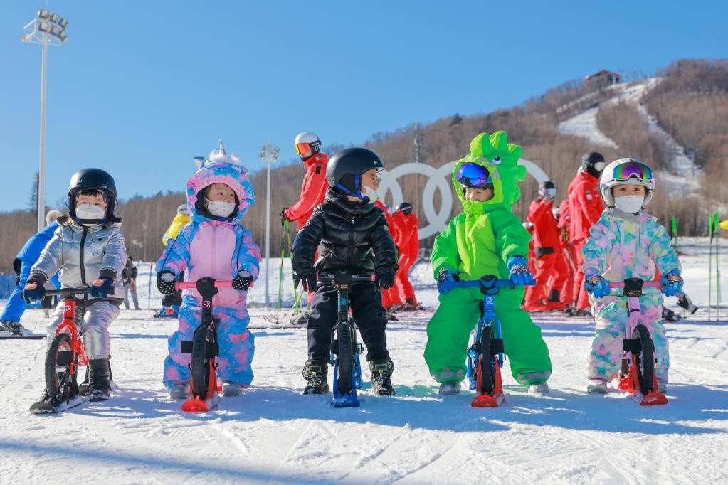 2021年11月17日,在長(zhǎng)白山國(guó)際度假區(qū)滑雪場(chǎng),小朋友們體驗(yàn)雪地平衡車(chē)。新華社發(fā)
