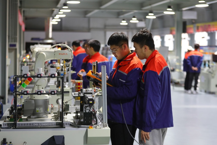 圖為11月2日,在沈陽工學(xué)院工業(yè)機(jī)器人實(shí)訓(xùn)中心,機(jī)器人工程專業(yè)學(xué)生進(jìn)行工業(yè)機(jī)器人基礎(chǔ)實(shí)踐應(yīng)用操作。近年來,沈陽工學(xué)院全力建設(shè)工業(yè)機(jī)器人實(shí)訓(xùn)中心,將車間搬進(jìn)校園。針對(duì)企業(yè)需求,學(xué)校開展機(jī)械加工等實(shí)操課程,有力提升學(xué)生就業(yè)水平。新華社記者 楊青 攝