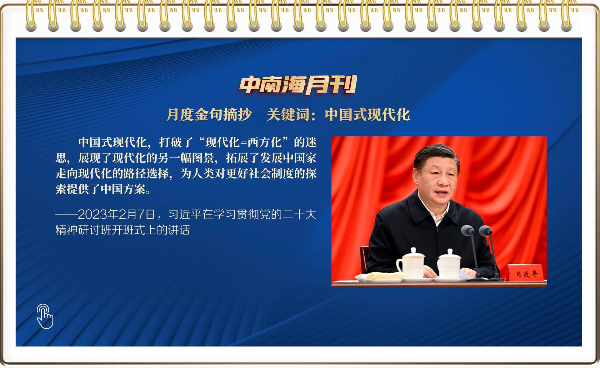 2月7日,習(xí)近平總書(shū)記第10次在專題研討班開(kāi)班式上主講“新年第一課”。面對(duì)“關(guān)鍵少數(shù)”的“關(guān)鍵一課”,總書(shū)記從學(xué)習(xí)貫徹黨的二十大精神的關(guān)鍵點(diǎn)“破題”,深入闡釋了中國(guó)式現(xiàn)代化這一重大命題。