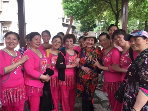 2017年,李淑范(左五)和社區(qū)舞蹈隊(duì)同伴們在一起