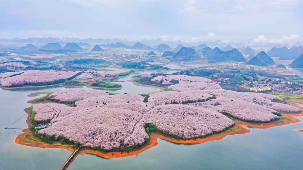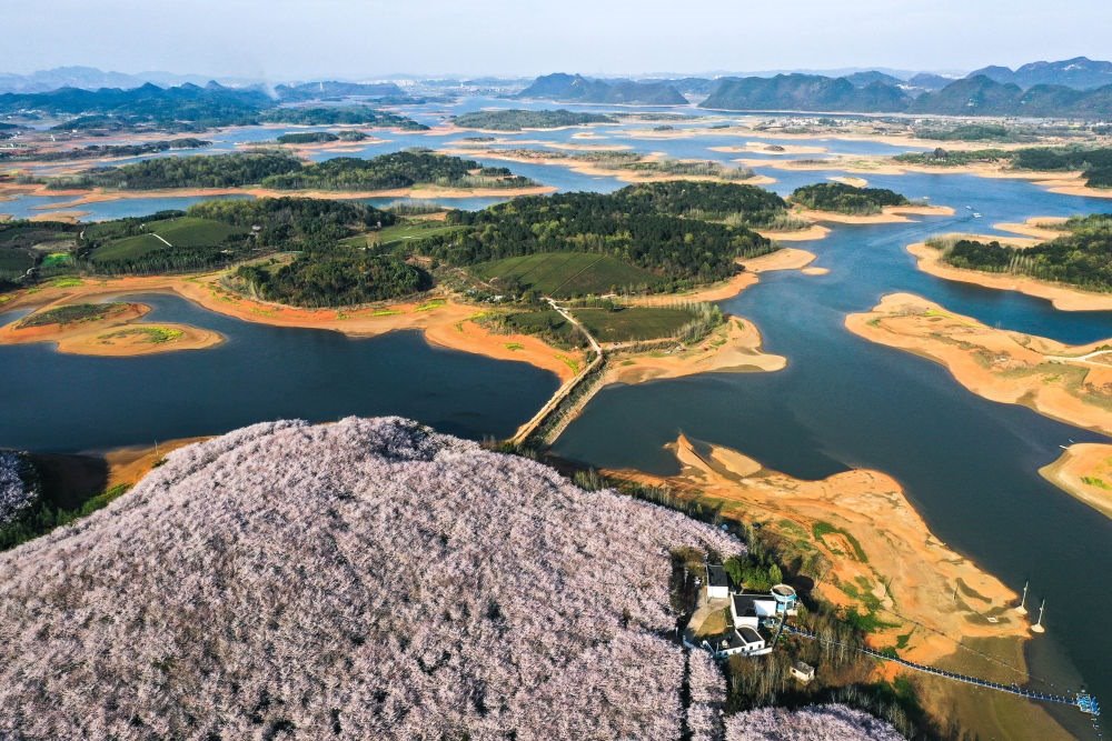 貴州省貴安新區(qū)櫻花園(無(wú)人機(jī)照片,2022年3月17日攝)。新華社記者 歐東衢 攝