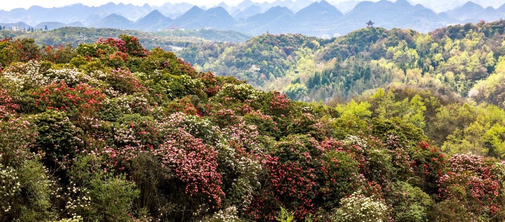 地處貴州畢節(jié)的百里杜鵑風(fēng)景名勝區(qū),每年花開時(shí)節(jié)都會(huì)吸引游客前來(lái)觀賞。此處綿延分布了125.8平方公里的原始杜鵑林帶,是國(guó)家5A級(jí)旅游景區(qū)。