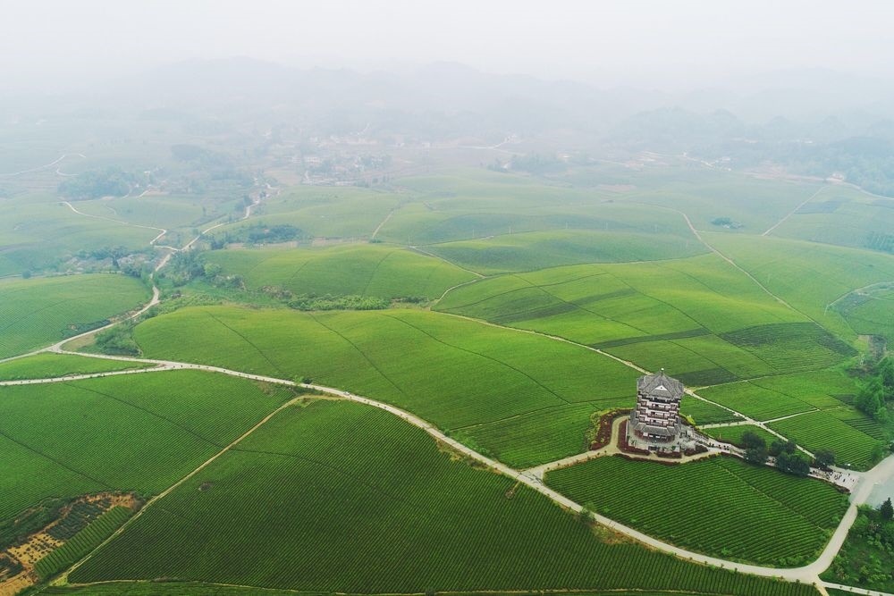 貴州省湄潭縣永興鎮(zhèn)萬(wàn)畝茶海(無(wú)人機(jī)全景照片,2023年4月4日攝)。新華社記者 歐東衢 攝
