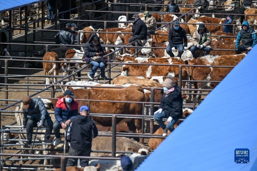 4月12日拍攝的繁忙的成峰牲畜交易市場(chǎng)。