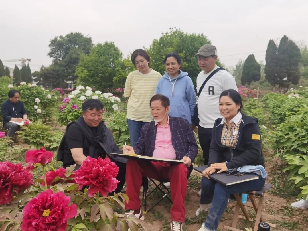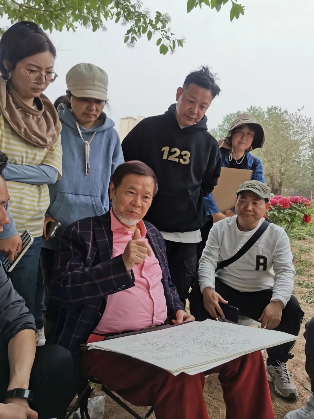 自1975年29歲的何水法先生以赤子之心,首次只身赴菏澤,48年來,為畫牡丹,寫其牡丹之真情、寫其牡丹之風(fēng)骨,寫其國花繁榮富強(qiáng)之真諦。用何水法先生世紀(jì)之初所言:“寫生是畫家與生活的對話”。藝術(shù)家也要不斷地站在時(shí)代的前列,站在歷史的高位,不斷思索,不斷地刷新繪畫語言。要緊隨時(shí)代發(fā)展的需要,不斷突破新題材、突破新意境。因此他今年又親率眾學(xué)生第十五次來菏澤深入考察,發(fā)揮示范引領(lǐng)作用,體驗(yàn)生活、開闊思維,為謳歌人民、謳歌新時(shí)代,進(jìn)行新的藝術(shù)創(chuàng)造。