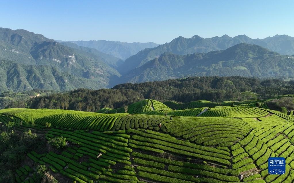 4月16日,茶農(nóng)在鶴峰縣走馬鎮(zhèn)木耳山茶園采茶。