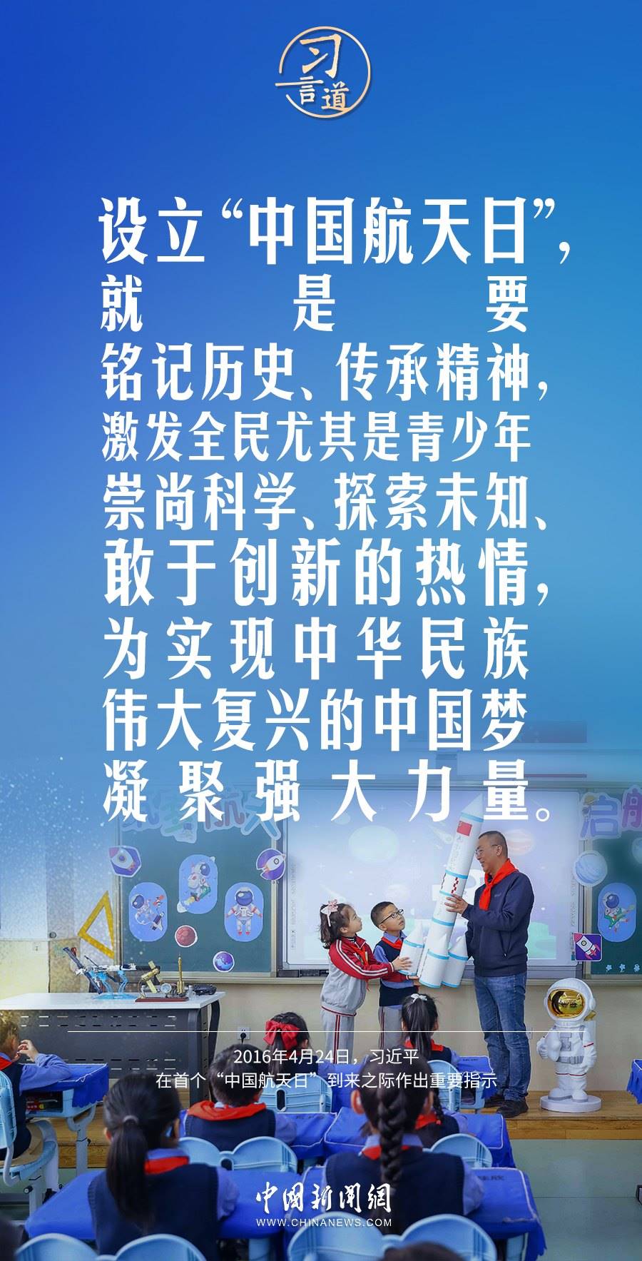4月24日是中國(guó)航天日,今年的主題為“格物致知,叩問蒼穹”。習(xí)近平總書記高度重視航天事業(yè)發(fā)展,多次鼓勵(lì)青少年要崇尚科學(xué)、敢于有夢(mèng)。