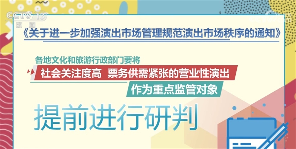 通知指出,各地文化和旅游行政部門要依法做好演出活動(dòng)的審批工作,將屬于營(yíng)業(yè)性演出范圍的農(nóng)村集鎮(zhèn)演出、流動(dòng)性演出納入審批管理,嚴(yán)格審核演出舉辦單位的資質(zhì)文件,統(tǒng)一審批要求,做好內(nèi)容監(jiān)管。對(duì)不符合法定審批要求的,堅(jiān)決不予批準(zhǔn)。文化和旅游行政部門要定期對(duì)演出場(chǎng)所進(jìn)行檢查,督促演出場(chǎng)所定期開(kāi)展設(shè)施設(shè)備檢查,落實(shí)安全生產(chǎn)責(zé)任制。督促演出場(chǎng)所建立完善現(xiàn)場(chǎng)巡查制度,指定專人負(fù)責(zé)演出活動(dòng)的巡查,做好現(xiàn)場(chǎng)觀眾管理,堅(jiān)決防止擁擠、踩踏等事故發(fā)生,確保演出現(xiàn)場(chǎng)安全。各地文化和旅游行政部門要將社會(huì)關(guān)注度高、票務(wù)供需緊張的營(yíng)業(yè)性演出作為重點(diǎn)監(jiān)管對(duì)象,提前進(jìn)行研判。督促演出舉辦單位、演出票務(wù)經(jīng)營(yíng)單位面向市場(chǎng)公開(kāi)銷售的營(yíng)業(yè)性演出門票數(shù)量,不得低于核準(zhǔn)觀眾數(shù)量的70%。對(duì)在票務(wù)經(jīng)營(yíng)中發(fā)現(xiàn)有炒票問(wèn)題或可能造成不良影響的,應(yīng)當(dāng)及時(shí)約談演出舉辦單位和演出票務(wù)經(jīng)營(yíng)單位,督促整改。要聯(lián)合屬地公安、市場(chǎng)監(jiān)管等部門,依法打擊“黃?!背雌薄⑻摷傩麄鞯冗`法違規(guī)行為,切實(shí)保障消費(fèi)者合法權(quán)益。