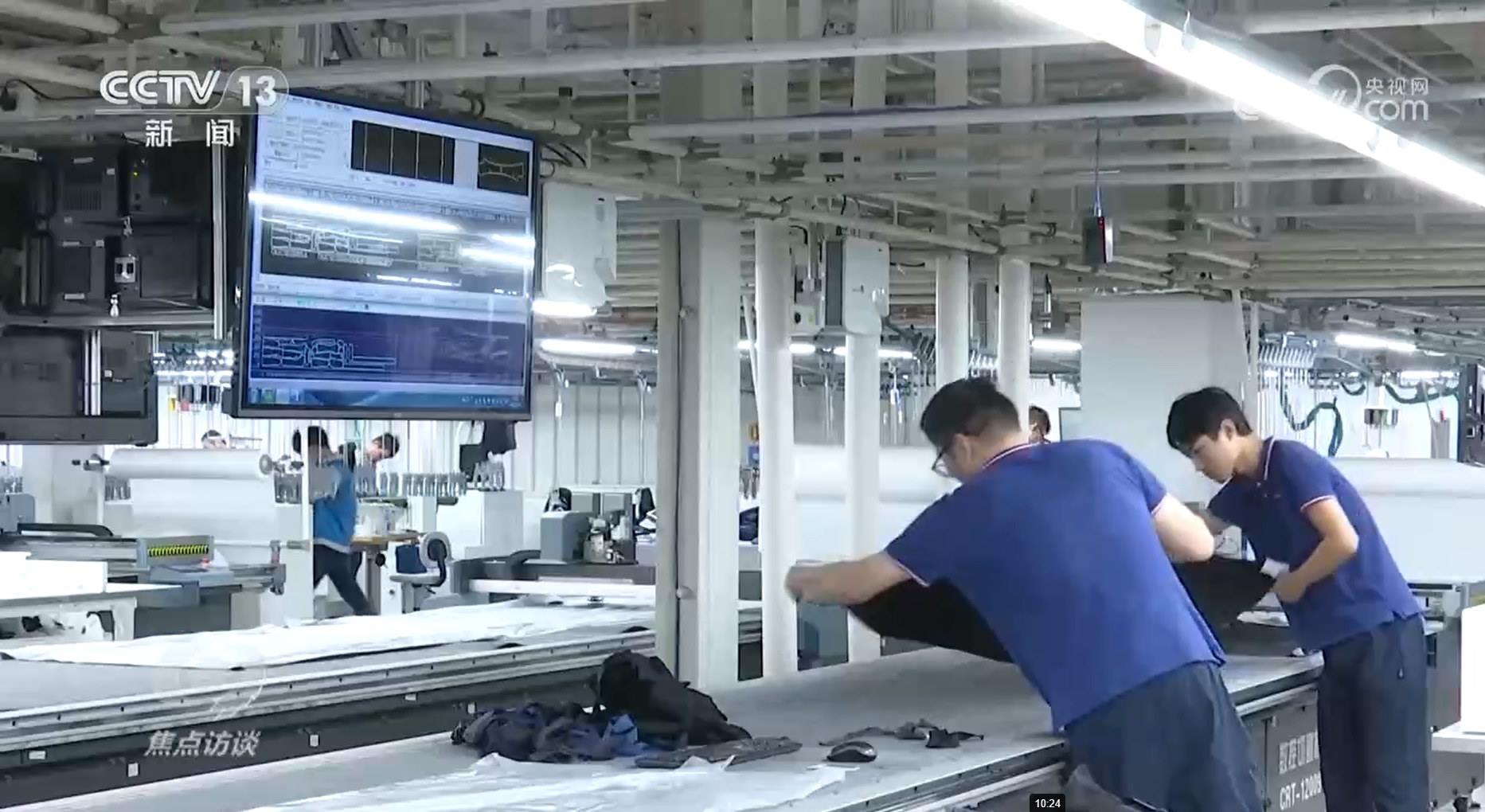 青島酷特智能股份有限公司經(jīng)理劉阿娜:“全球的客戶只要把一些核心的數(shù)據(jù)給到我們,幾秒鐘后會自動生成客戶想要的版型,進(jìn)入生產(chǎn)?!?/p>