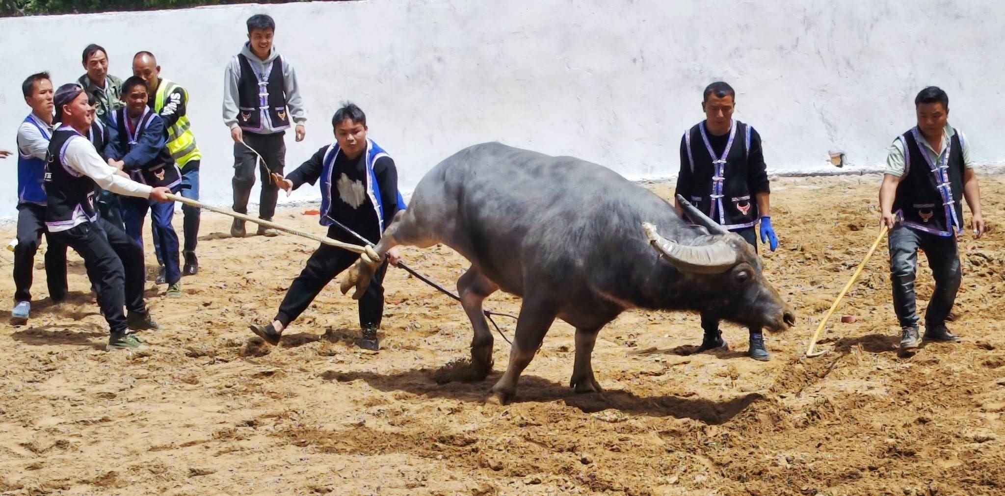 武漢:鄉(xiāng)村上演斗牛表演