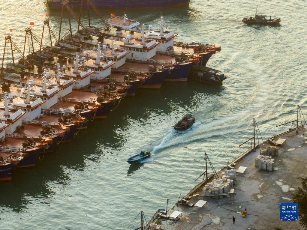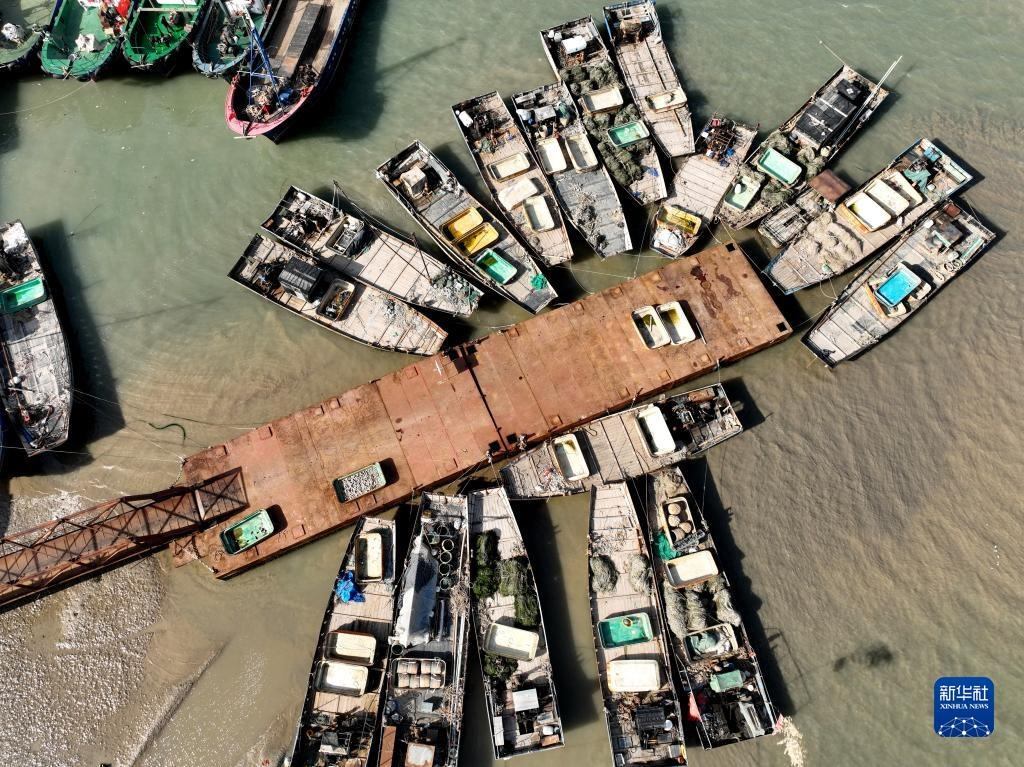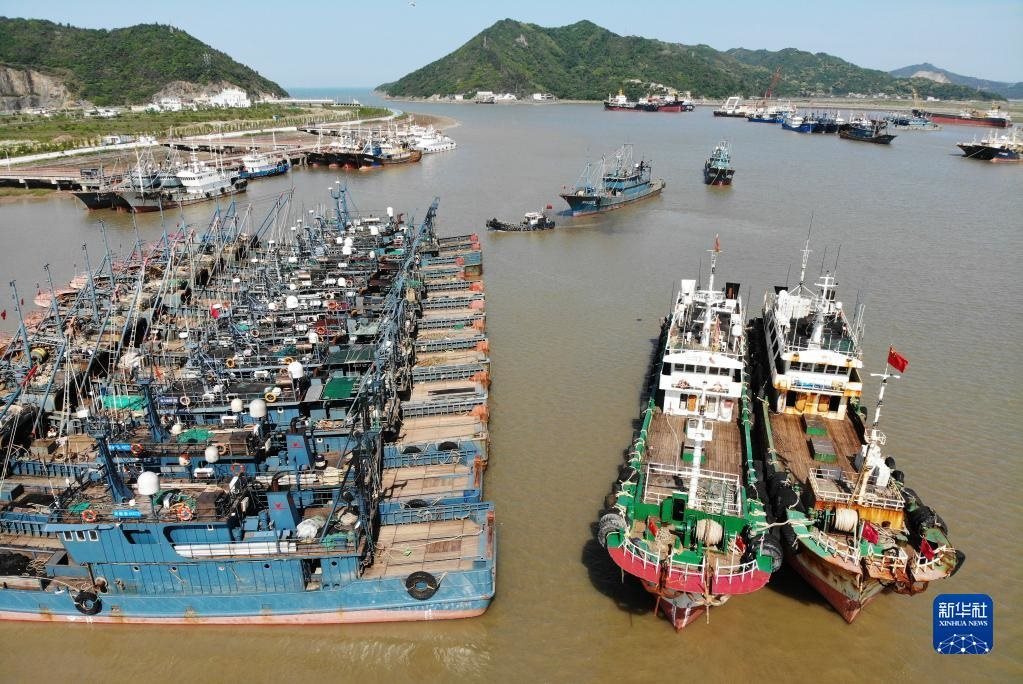 4月30日,準備休漁的漁船停泊在福建省福州市連江縣苔菉鎮(zhèn)北茭村漁港(無人機照片)。