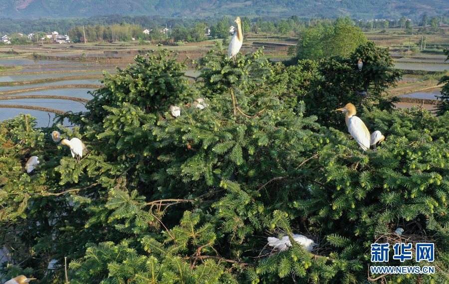 航拍安徽省宣城市旌德縣興隆鎮(zhèn)三山村,良好的生態(tài)環(huán)境吸引眾多鳥(niǎo)類在這里安家落戶。新華網(wǎng)發(fā)(江建興 攝)