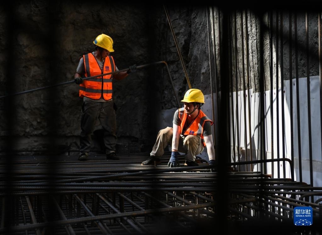 5月1日,在成都地鐵27號線一期工程項目花照壁北站施工現(xiàn)場,中建三局的工人在施工。