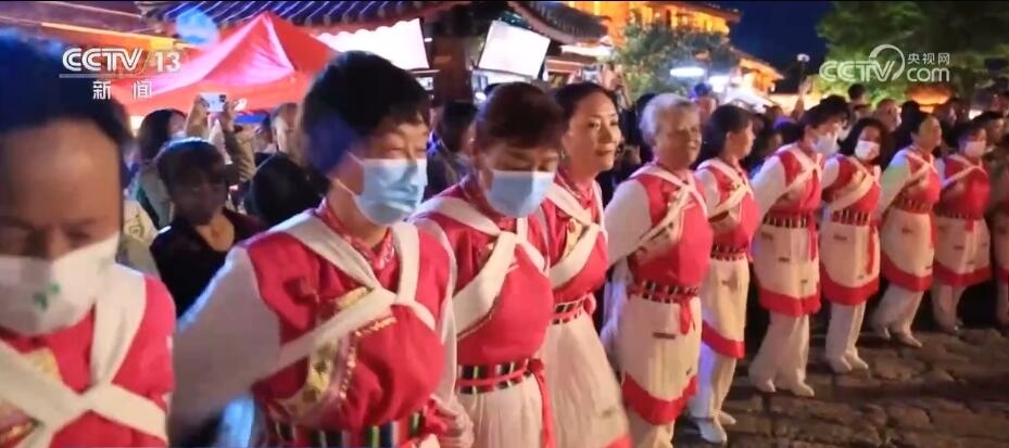 景區(qū)推出了一系列展演活動,每天傍晚的篝火打跳非常熱鬧。夜幕降臨,四方游客加入納西阿媽的舞蹈,每一步、每一跺腳都是滿滿的快樂,古城的熱鬧喧囂要持續(xù)一整天。據(jù)了解,古城昨日(4月30日)游客接待量達(dá)到18萬人次,在人數(shù)最高峰的時候可以達(dá)到實時8.4萬人次,麗江古城民宿預(yù)訂率達(dá)到80%。