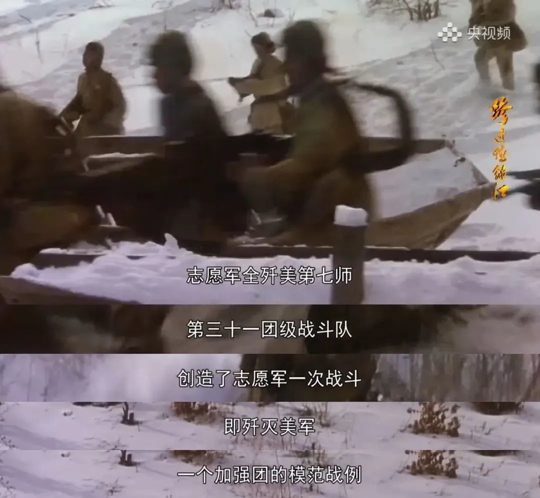 “志愿軍全殲美第七師第三十一團(tuán)級(jí)戰(zhàn)斗隊(duì),創(chuàng)造了志愿軍一次戰(zhàn)斗即殲滅美軍一個(gè)加強(qiáng)團(tuán)的模范戰(zhàn)例?!?/p>