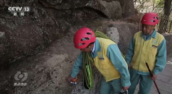 黃山放繩工李培生:“當(dāng)時(shí)下去肯定怕,翻過(guò)欄桿一剎那,回過(guò)頭看到懸崖下面的時(shí)候,那是萬(wàn)丈懸崖,心里也沒(méi)有底。”