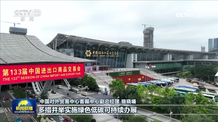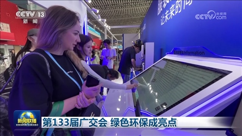央視網(wǎng)消息(新聞聯(lián)播):第133屆廣交會三期正在進行,綠色理念貫穿在布展、展品和技術等各個環(huán)節(jié)當中。