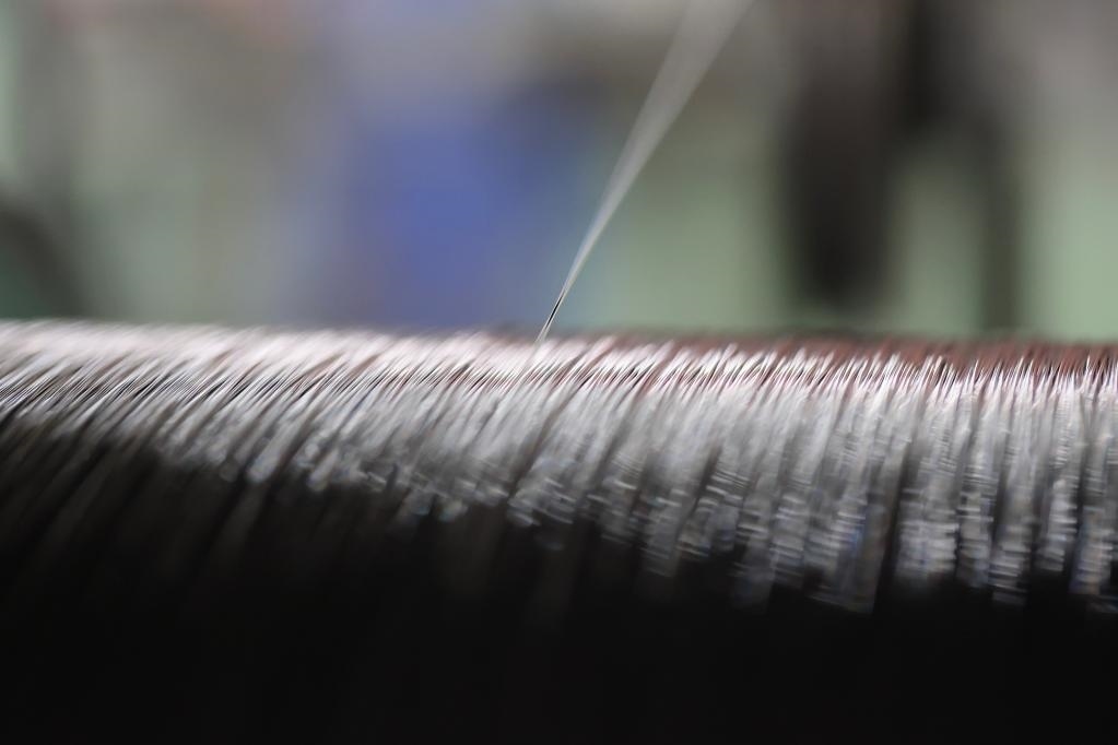 這是4月18日在貴州鋼繩股份有限公司拍攝的0.6毫米直徑鋼絲繩。新華社記者 崔曉強(qiáng) 攝
