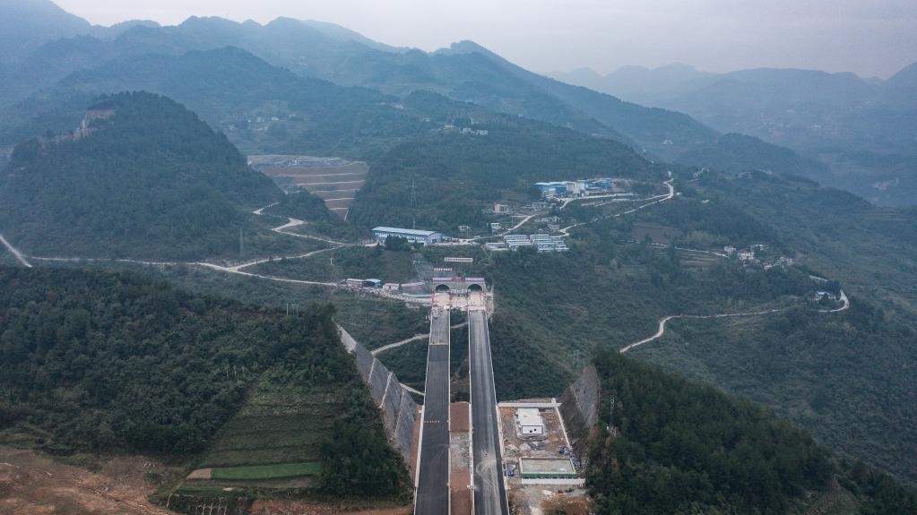 這是2022年10月13日拍攝的蘭州至??趪腋咚俟分貞c至遵義段(貴州境)擴(kuò)容工程項(xiàng)目桐梓隧道。當(dāng)日,桐梓隧道右幅順利貫通。新華社記者 陶亮 攝