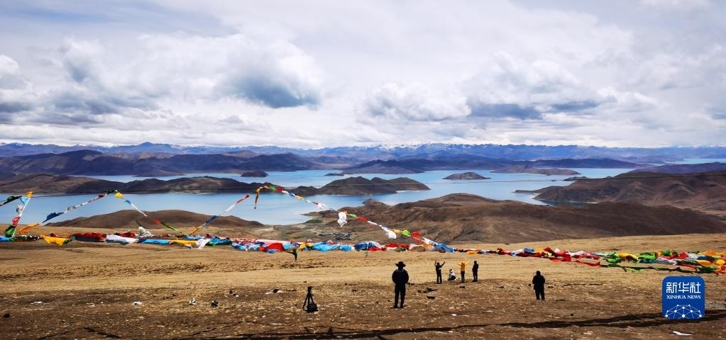 游客在羊卓雍錯魯日拉欣賞美景(5月1日攝,手機(jī)照片)。