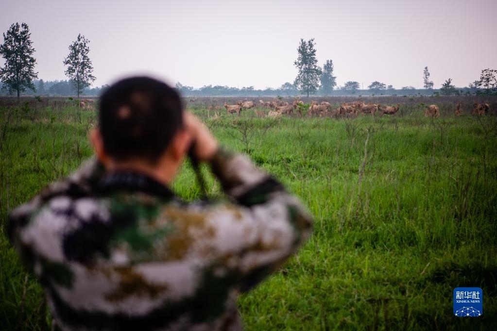 巡護(hù)隊伍通過望遠(yuǎn)鏡、長焦相機(jī)、無人機(jī)、視頻監(jiān)測塔、紅外相機(jī)等工具,對1500余頭麋鹿進(jìn)行日常監(jiān)測、年節(jié)律周期監(jiān)測、種群動態(tài)監(jiān)測,并對保護(hù)區(qū)內(nèi)的氣象數(shù)據(jù)、水文數(shù)據(jù)、地表水質(zhì)數(shù)據(jù)、植被類型以及其他野生動物情況進(jìn)行監(jiān)測記錄。他們還需要承擔(dān)卡口值守、應(yīng)急管理等工作。在他們的悉心照料下,這里成為適宜麋鹿種群棲息的家園。