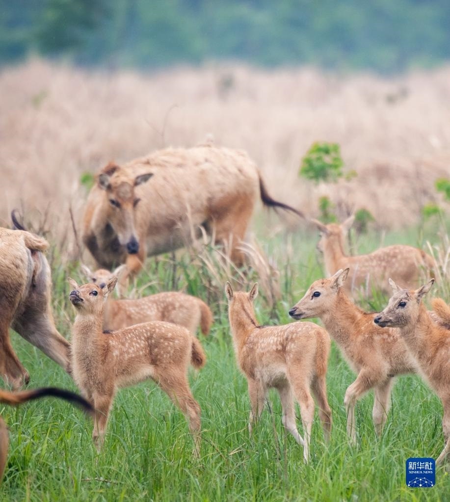 “每年三月下旬到五月下旬是麋鹿的產(chǎn)仔期,我們近期已經(jīng)監(jiān)測到約150頭幼鹿,預(yù)計今年新生麋鹿將超過350頭?!焙笔作缏箛壹壸匀槐Wo(hù)區(qū)管理處工程師張玉銘介紹,孕期的母鹿受到驚嚇容易流產(chǎn),剛出生的幼鹿比較瘦弱生存能力不強(qiáng),保護(hù)區(qū)將有針對性地加大巡護(hù)和監(jiān)測力度,讓麋鹿安心生產(chǎn),保障“鹿寶寶”健康茁壯成長。