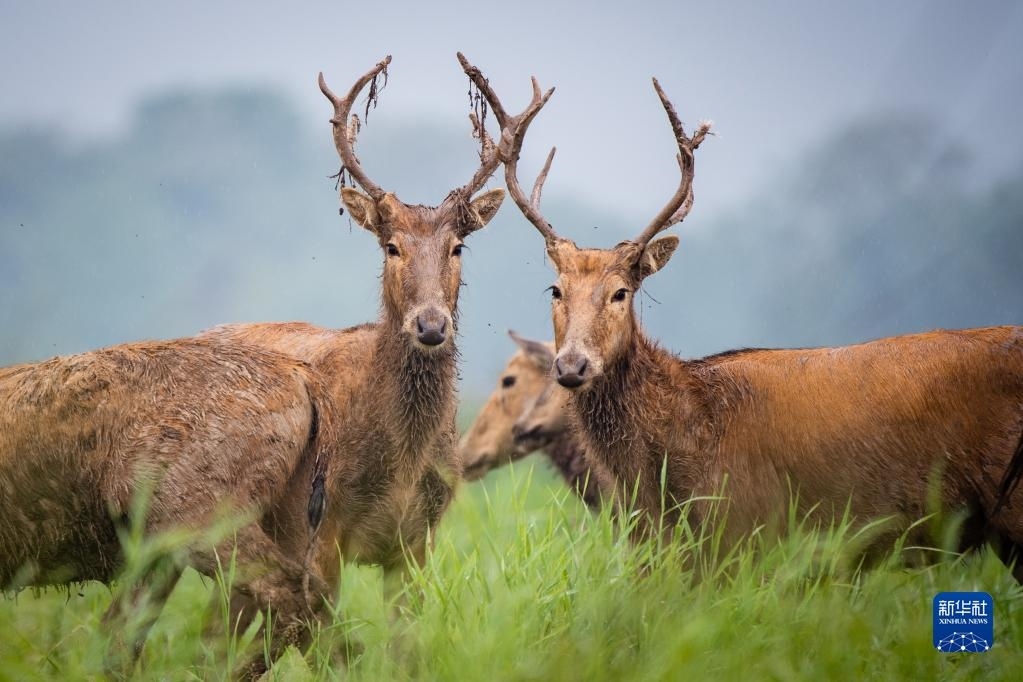 石首麋鹿國家級自然保護(hù)區(qū)成立于1991年,這里牧草豐富,濕地生態(tài)系統(tǒng)完整。30多年間,麋鹿種群繁衍擴(kuò)散,逐漸形成了保護(hù)區(qū)、東升三合垸、小河楊波坦及湖南洞庭湖4個小種群,從最初引進(jìn)的64頭發(fā)展到2500余頭,全部實現(xiàn)自然繁衍,恢復(fù)了野生習(xí)性。