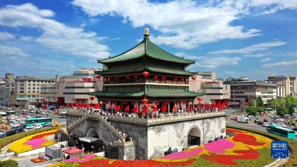 西安鐘樓(5月1日攝,無(wú)人機(jī)照片)。