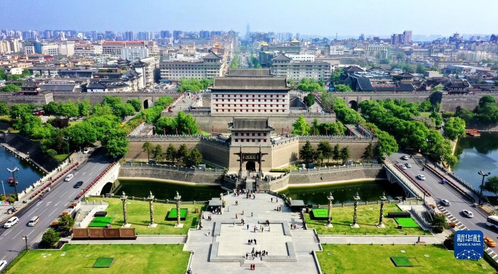 西安城墻永寧門(mén)(4月25日攝,無(wú)人機(jī)照片)。