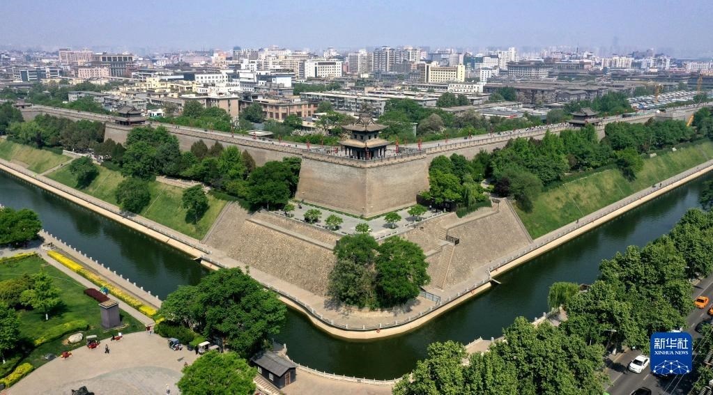 西安城墻東南城角(4月19日攝,無(wú)人機(jī)照片)。