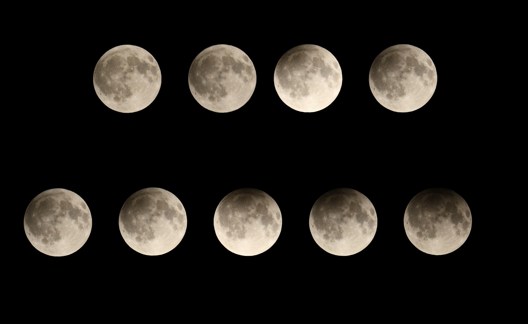 5月5日,2023年首場(chǎng)月食登場(chǎng),這是一次半影月食,月亮的“臉色”從亮變暗,再?gòu)陌底兞?,我?guó)可見(jiàn)全過(guò)程(拼版照片)。視覺(jué)中國(guó)