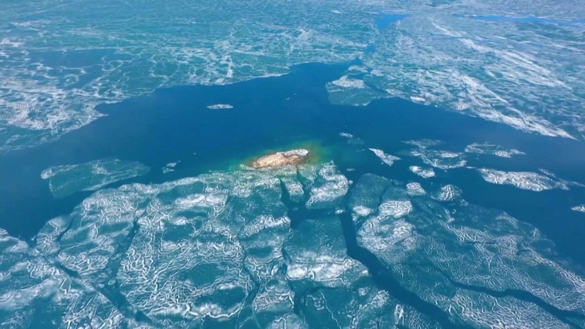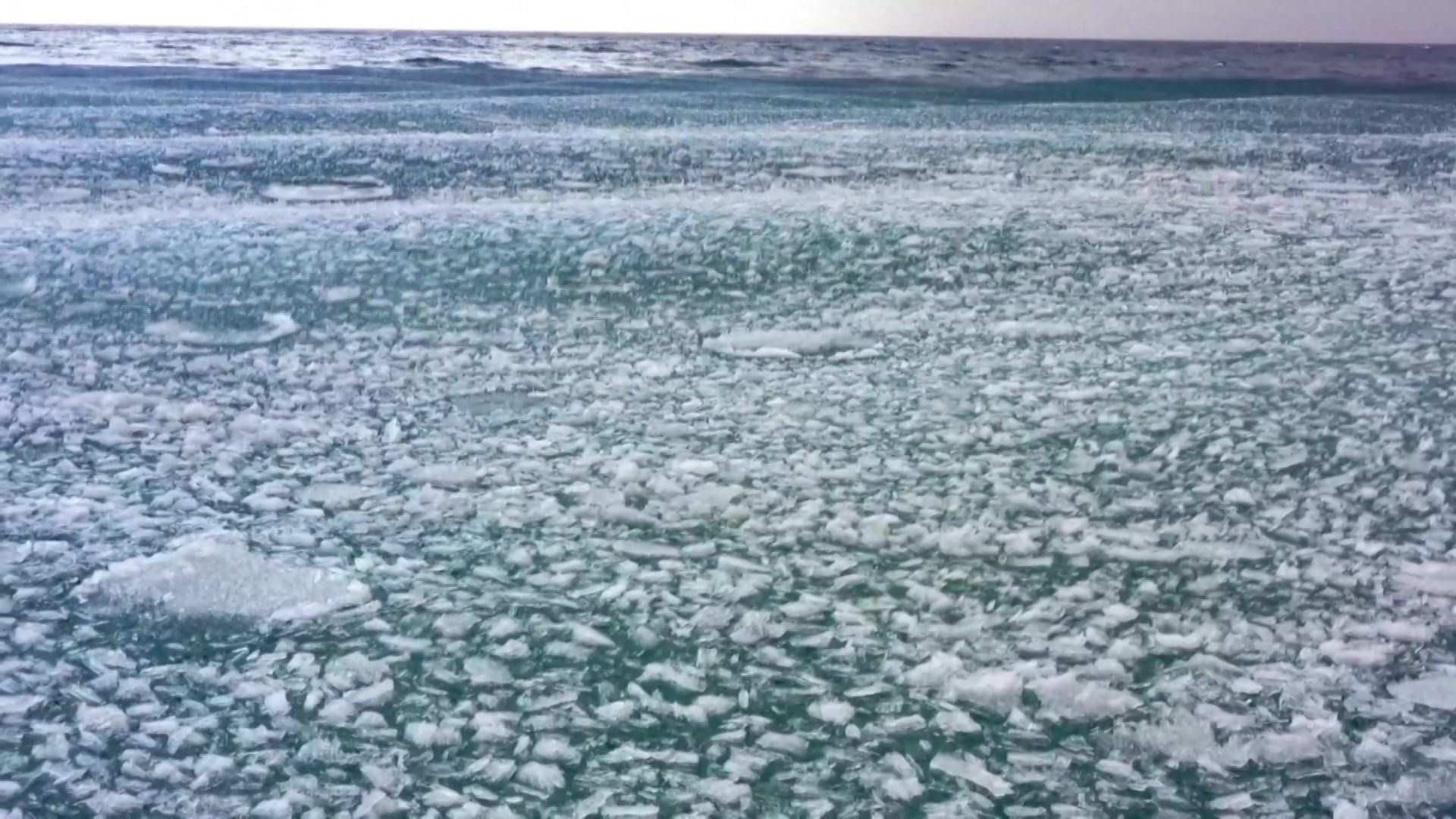 新疆賽里木湖冰層碎裂現(xiàn)“冰推”景觀